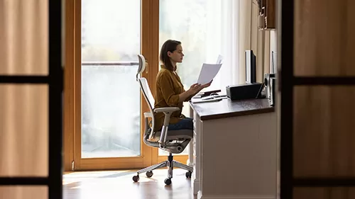 - Adjust the height of your desk and chair to ensure your elbows are bent at a 90-degree angle.